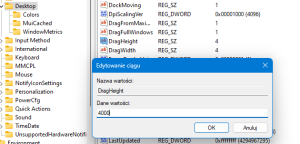 odszukaj     DragHeight  i  DragWidth  modyfikuj wartość na 4000 > zapisz i Uruchom Ponownie komputer